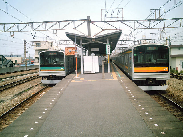 この列車と接続する立川行きとのツーショット。左側が浜川崎行き。